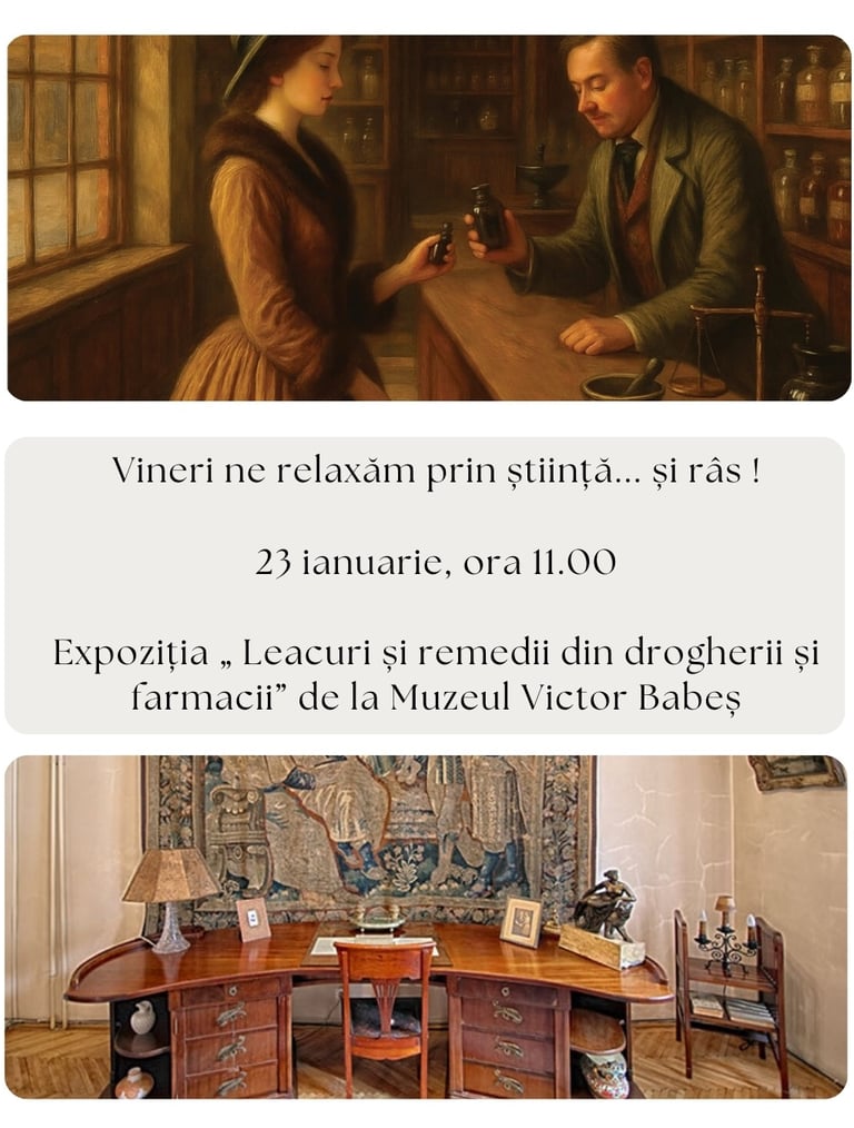 Muzeul Municipiului București invită publicul să descopere universul farmaciilor și drogheriilor din vechiul București. Expoziția „ Leacuri și remedii din drogherii și farmacii” de la Muzeul Memorial Victor Babeș reunește imagini de arhivă, reclame de epocă și piese recuperate în timpul cercetărilor arheologice, recompunând atmosfera locurilor unde, în secolul al XIX-lea, bucureștenii căutau leacuri și alinare.